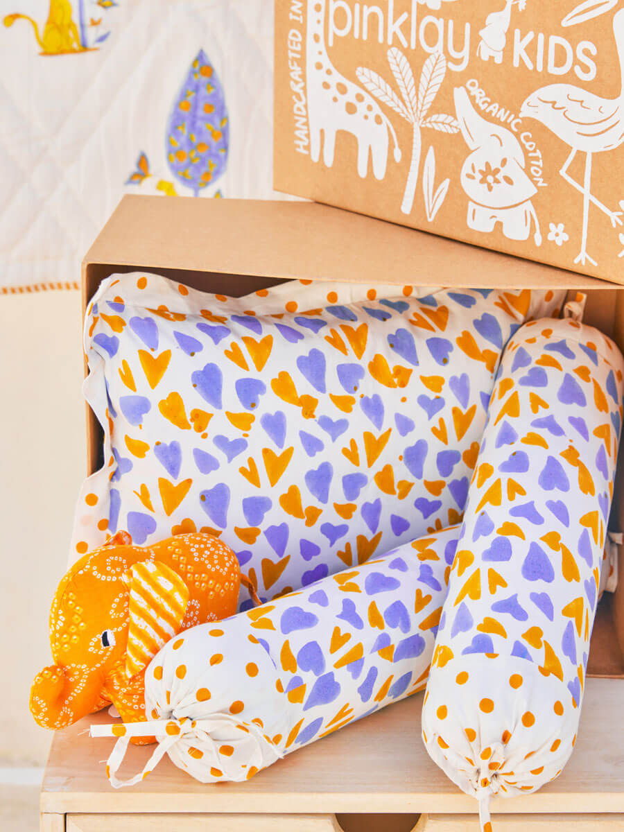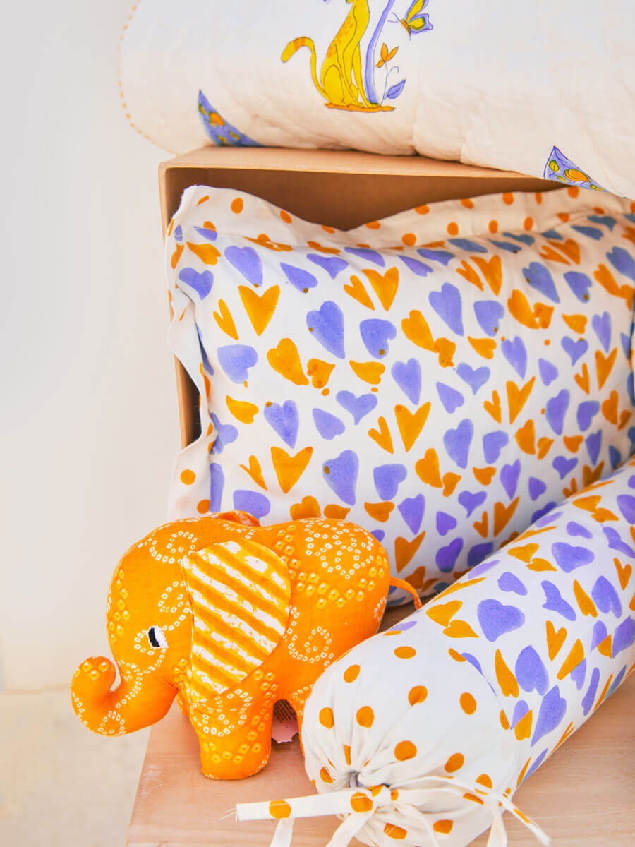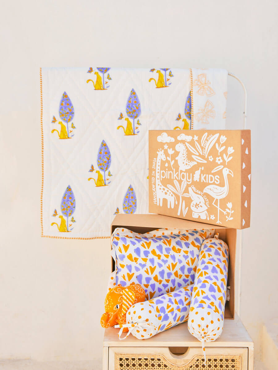 • Includes a baby quilt, pillow, two bolsters, and plush toy