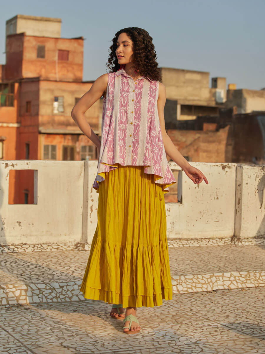 This garment is pre-washed prior to dispatchHand wash or gentle cycle machine washWash separately in cold water using a mild detergentDo not soak, wring, or tumble dryDry in shade. Use a warm ironNote: While we pre-wash all our indigo garments 7-8 times prior to dispatch, there is still a possibility for it to run colour in the first few washes, or run against the skin and/or light-coloured garments and accessories, in hot and/or humid conditions. This running of colour is harmless, characteristic of indigo dyeing, and generally does not fade the garment. For detailed step-by-step instructions, please watch our Wash Care Guide for indigo merchandise.