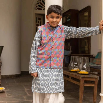 Jr. Voyager Organic Cotton Block Printed Short Kurta