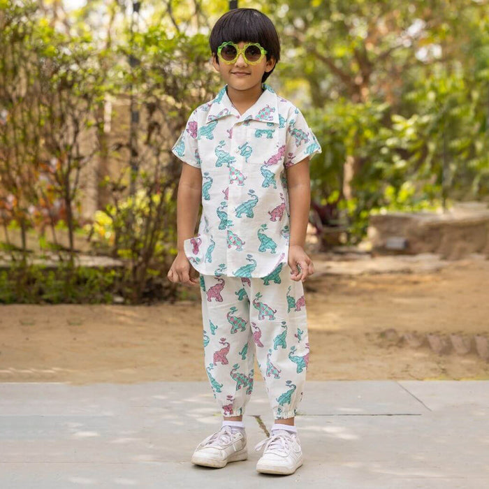 Set of 2 - Haathi Mere Saathi Organic Cotton Printed Shirt & Shorts