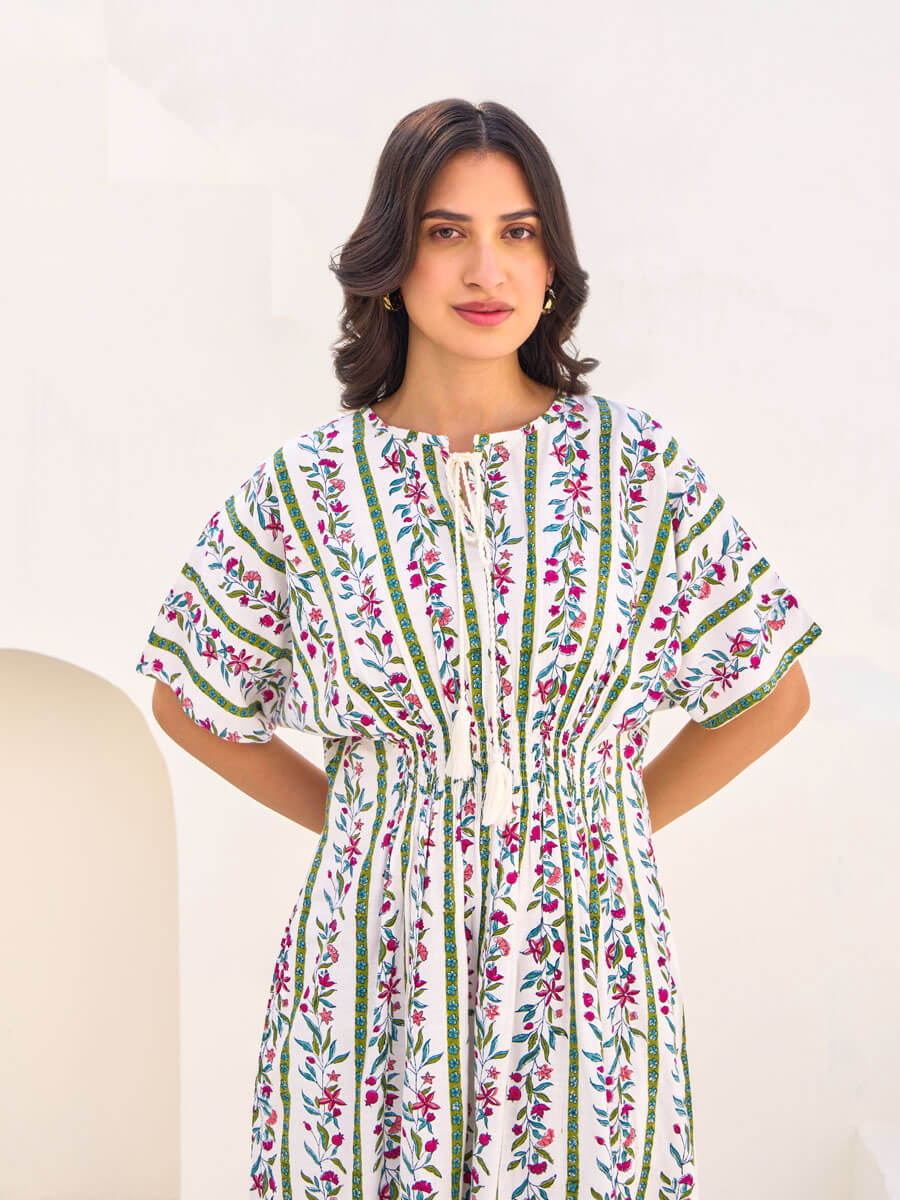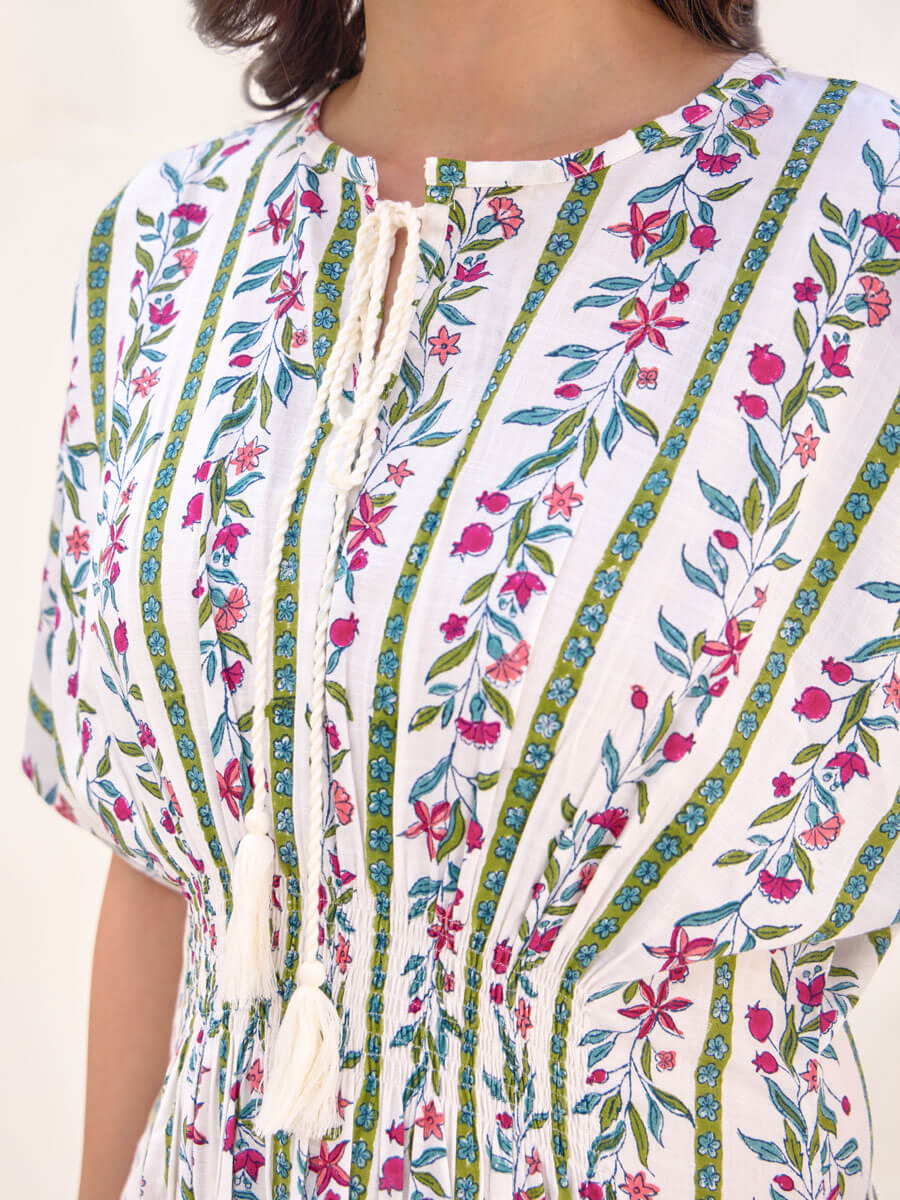 - Fitted bodice that cinches at the waist