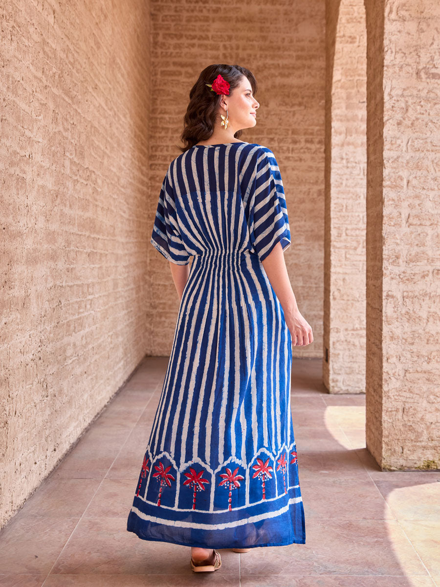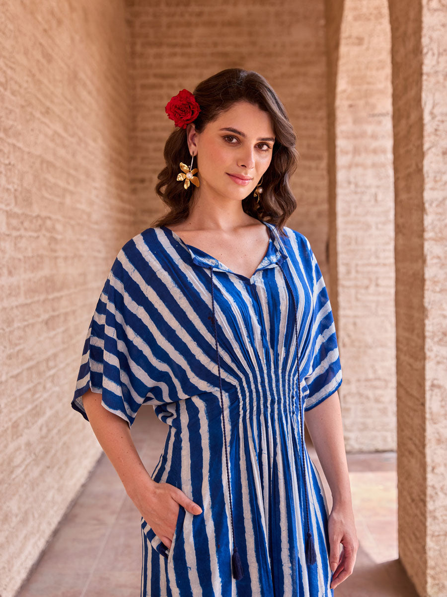 - Modal fit-and-flare maxi dress handcrafted using the Bagru dyeing technique
