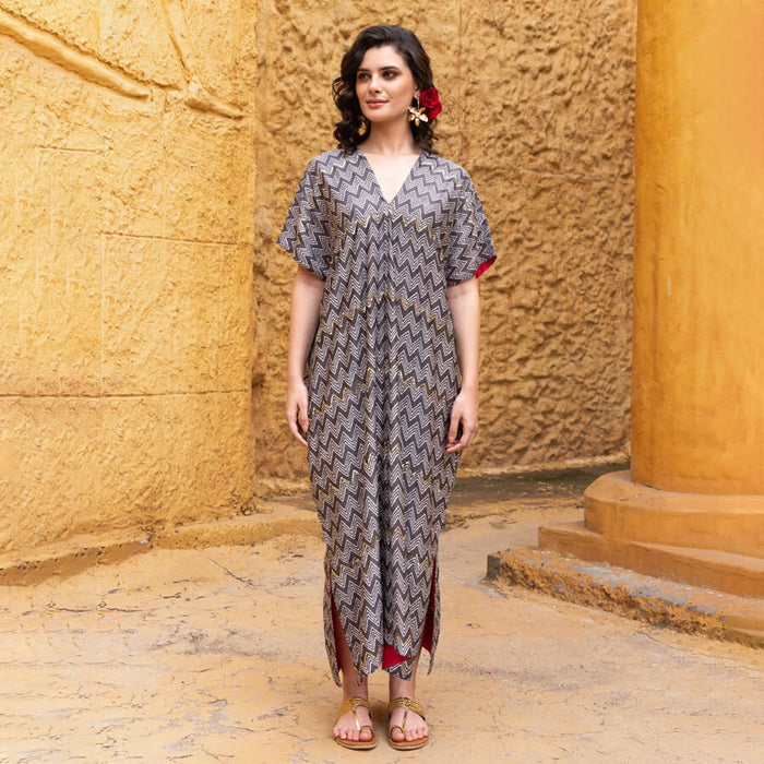 Indigo Stripes Dabu Kaftan Cotton Shirt Dress