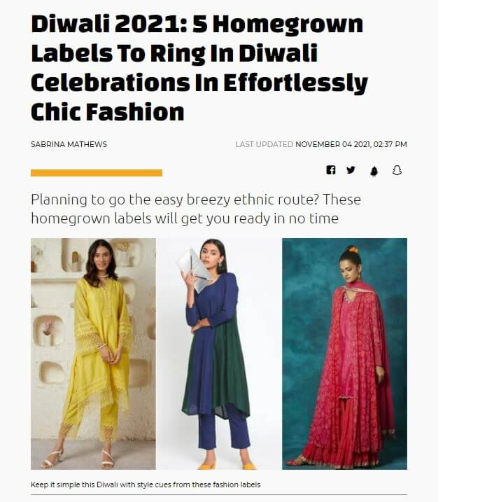 DIWALI 2021: 5 HOMEGROWN LABELS TO RING IN DIWALI CELEBRATIONS IN EFFORTLESSLY CHIC FASHION