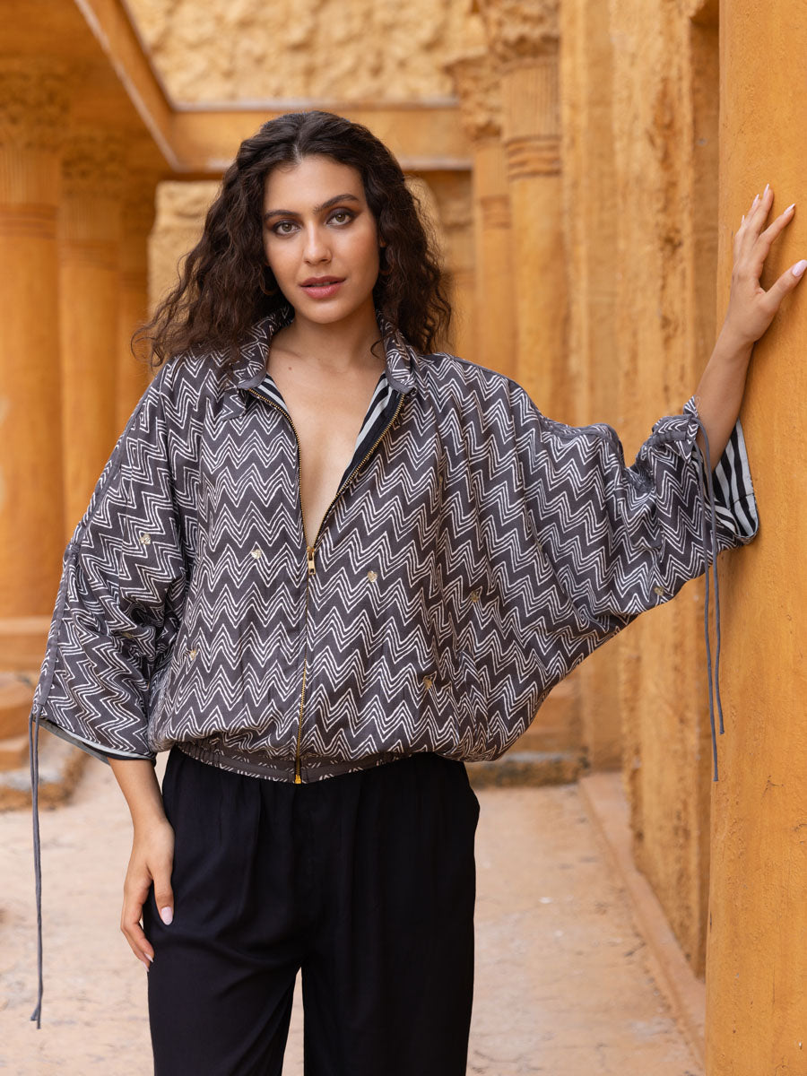 • Contemporary bomber jacket in twill fabric